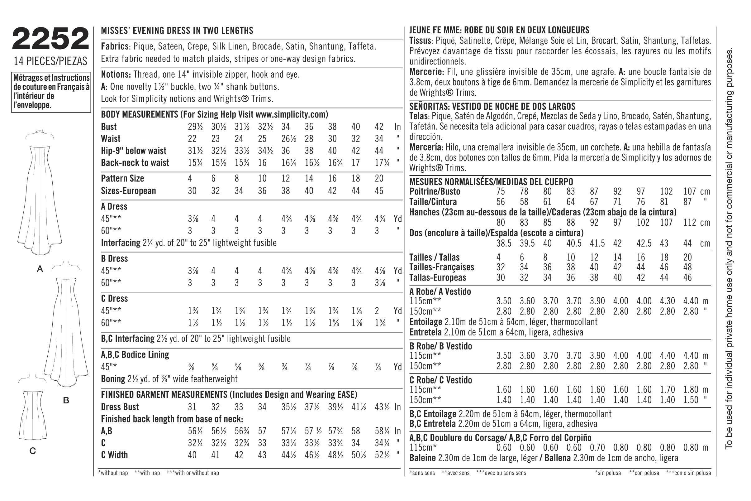 Simplicity 2252 Pattern Misses Evening Dress 2 Lengths 4 12 For Sale Online Ebay